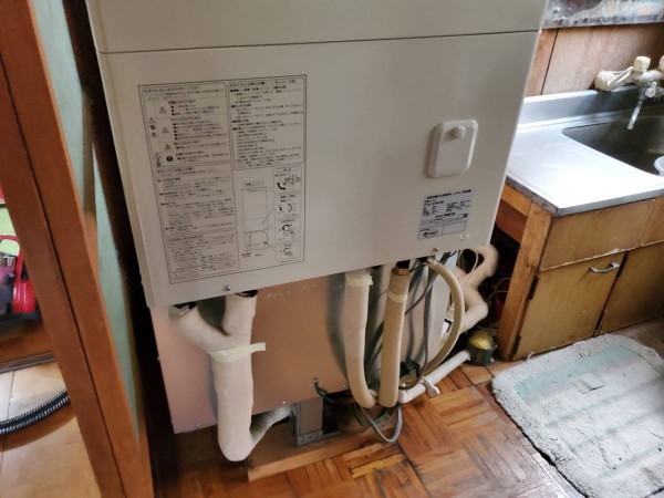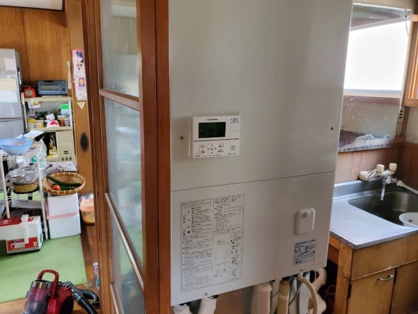 福井市今泉町 コロナ自然冷媒CO2家庭用ヒートポンプ給湯機 貯湯ユニットCTU-E37AY4K、ヒートポンプユニットCHP-Y453K エコキュート交換工事
