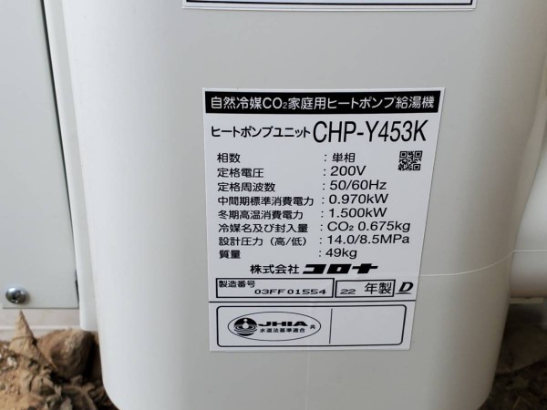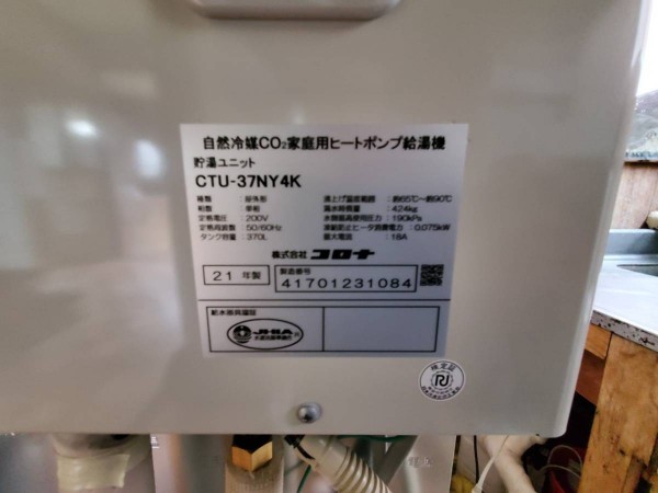 トップページ > 工事事例一覧 > 福井市今泉町 コロナ自然冷媒CO2家庭用ヒートポンプ給湯機 貯湯ユニットCTU-E37AY4K、ヒートポンプユニットCHP-Y453K エコキュート交換工事