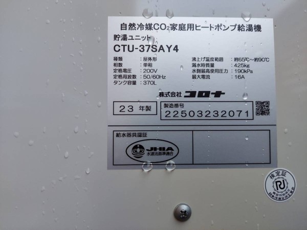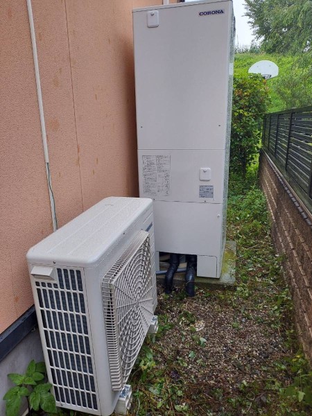 敦賀市御名 東芝エコキュート→コロナ自然冷媒CO2家庭用ヒートポンプ給湯機 貯湯ユニットCTU-37SAY4 エコキュート交換工事
