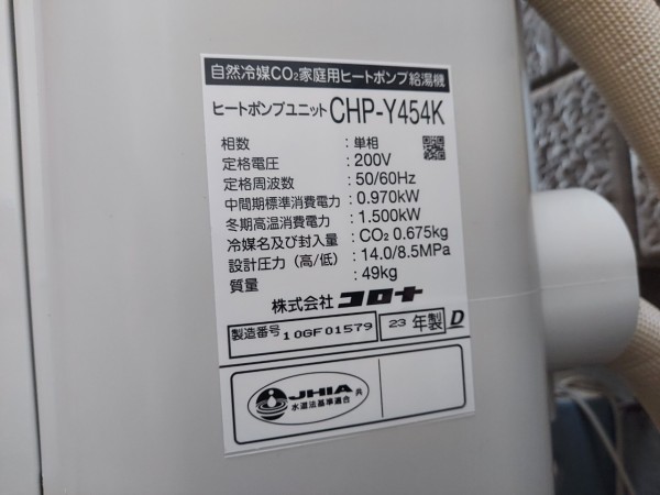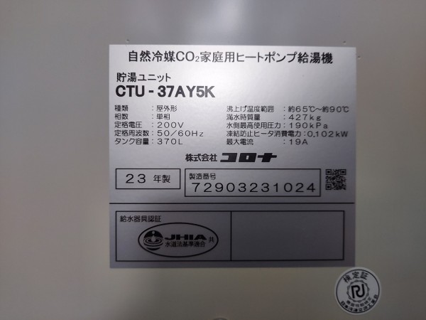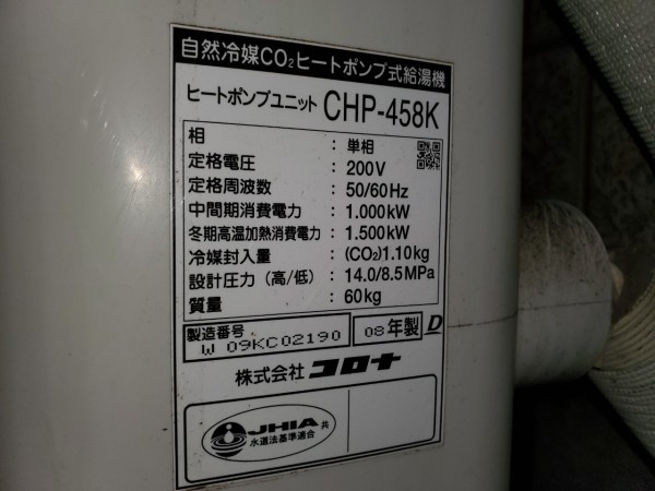 越前町宇田 コロナエコキュートCHP-458K→コロナ自然冷媒CO2家庭用ヒートポンプ給湯機貯湯ユニットCTU-37AY5K、ヒートポンプユニットCHP-Y454K エコキュート交換工事
