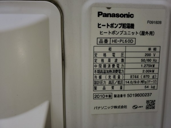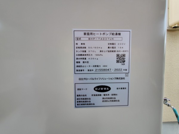 おおい町佐畑 パナソニックエコキュートHE-PL60D→日立家庭用ヒートポンプ給湯機BHP-TAD37UK エコキュート交換工事