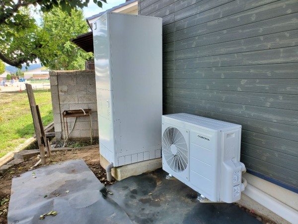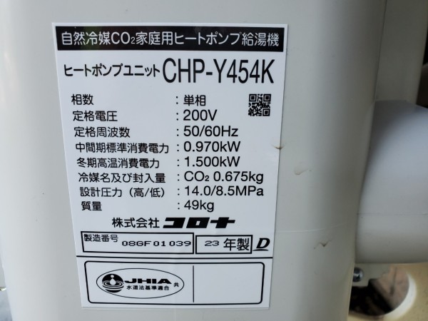永平寺町大月 コロナ自然冷媒CO2家庭用ヒートポンプ給湯機 ヒートポンプユニットCHP-Y454K エコキュート交換工事
