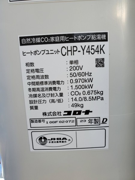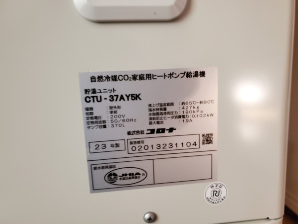 永平寺町大月 コロナ自然冷媒CO2家庭用ヒートポンプ給湯機貯湯ユニットCTU-37AY5K、ヒートポンプユニットCHP-Y454K エコキュート交換工事|福井県のエコキュート専門交換工事店|福井エコキュート交換ショップ補助金対応可能