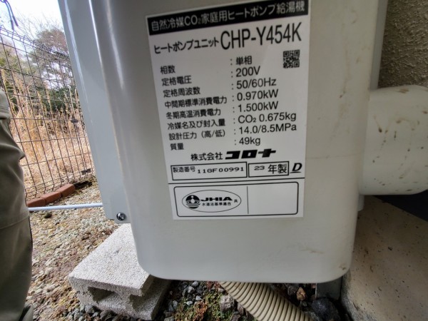 福井市今泉町 コロナ自然冷媒CO2家庭用ヒートポンプ給湯機ヒートポンプユニットCHP-Y454K エコキュート交換工事|福井県のエコキュート専門交換工事店|福井エコキュート交換ショップ補助金対応可能