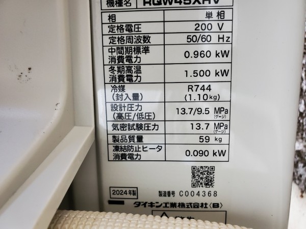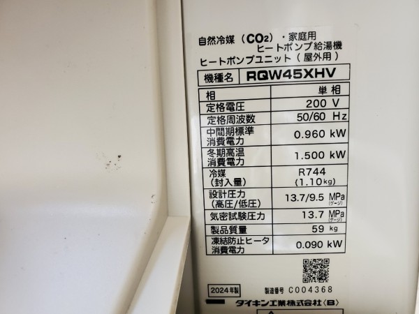 高浜町日置 ダイキン自然冷媒(CO2)・家庭用ヒートポンプ給湯機ヒートポンプユニットRQW45XHV エコキュート交換工事|福井県のエコキュート専門交換工事店|福井エコキュート交換ショップ補助金対応可能