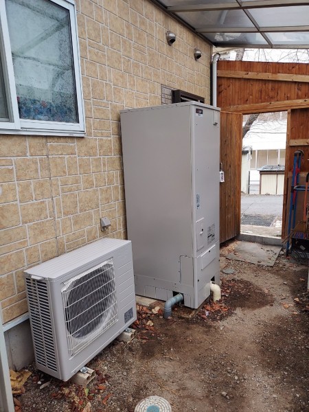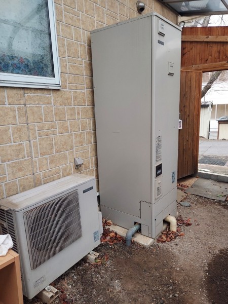 小浜市大戸 三菱電機エコキュート→三菱電機自然冷媒CO2家庭用ヒートポンプ給湯機貯湯ユニットSRT-STK376D、ヒートポンプユニット エコキュート交換工事