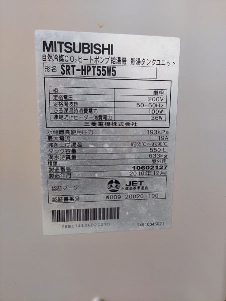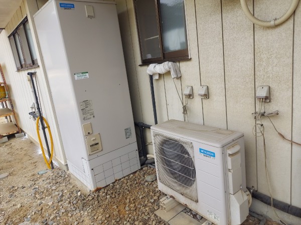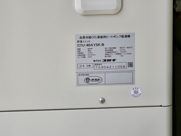高浜町日置 コロナ自然冷媒CO2家庭用ヒートポンプ給湯機貯湯ユニットCTU-46AY5K-B エコキュート交換工事