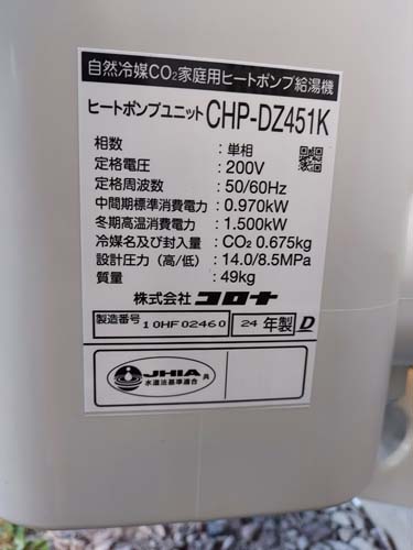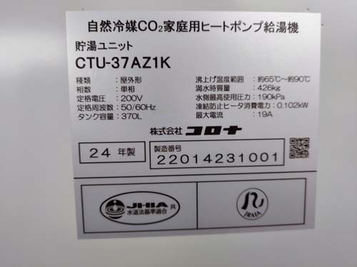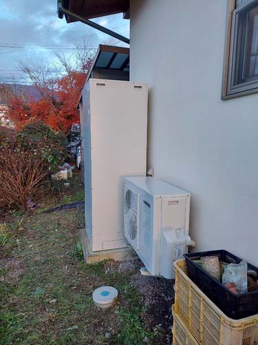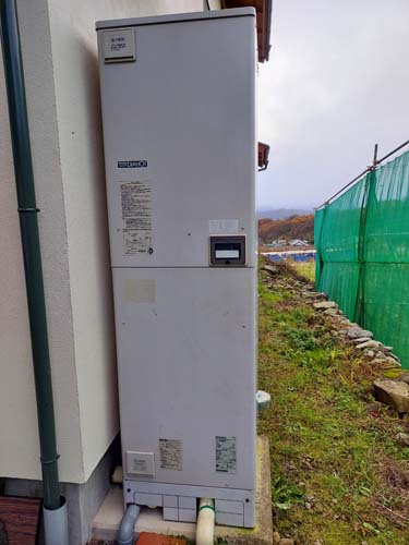 トップページ > 工事事例一覧 > 小浜市小湊 コロナ自然冷媒CO2家庭用ヒートポンプ給湯機貯湯ユニットCTU-37AZ1K、ヒートポンプユニットCHP-DZ451K エコキュート交換工事