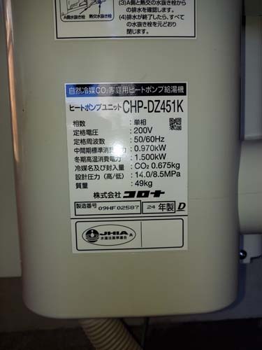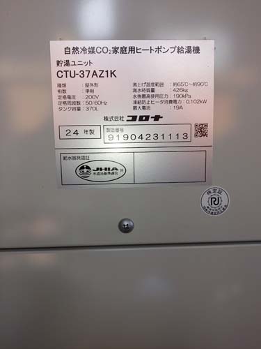 大野市榎 コロナ自然冷媒CO2家庭用ヒートポンプ給湯機貯湯ユニットCTU-37AZ1K、ヒートポンプユニットCHP-DZ451K エコキュート交換工事|福井県のエコキュート専門交換工事店|福井エコキュート交換ショップ補助金対応可能