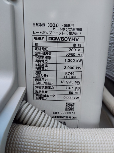 おおい町父子 ダイキン自然冷媒CO2家庭用ヒートポンプユニットRQW60YHV エコキュート交換工事|福井県のエコキュート専門交換工事店|福井エコキュート交換ショップ補助金対応可能