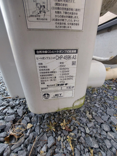 永平寺町大月 コロナ自然冷媒CO2家庭用ヒートポンプ給湯機 ヒートポンプユニットCHP-DZ451K エコキュート交換工事|福井県のエコキュート専門交換工事店|福井エコキュート交換ショップ補助金対応可能