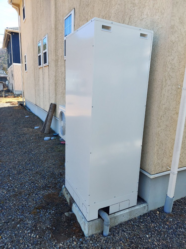 トップページ > 工事事例一覧 > おおい町佐畑 コロナ自然冷媒CO2家庭用ヒートポンプ給湯機 ヒートポンプユニットCHP-DZ451K エコキュート交換工事