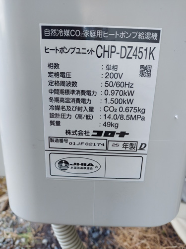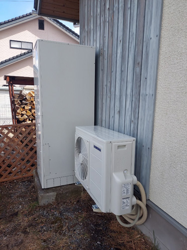 トップページ > 工事事例一覧 > 越前町上野 コロナ自然冷媒CO2家庭用ヒートポンプ給湯機貯湯ユニットCTU-37AZ1K、ヒートポンプユニットCHP-DZ451K エコキュート交換工事