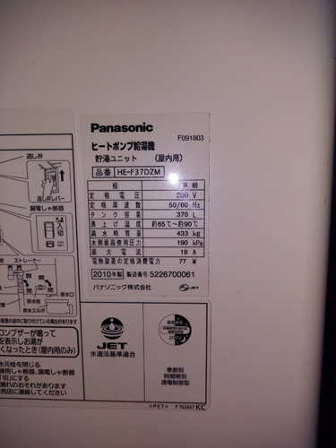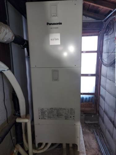 永平寺町大月 パナソニックヒートポンプ給湯機 貯湯ユニットHE-F37DZM→コロナ自然冷媒CO2家庭用ヒートポンプ給湯機 ヒートポンプユニットCHP-DZ451K エコキュート交換工事