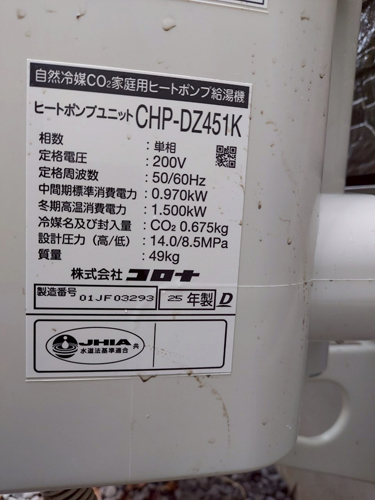 トップページ > 工事事例一覧 > 池田町持越 コロナ自然冷媒CO2家庭用ヒートポンプ給湯機貯湯ユニットCTU-37AZ1K、ヒートポンプユニットCHP-DZ451K エコキュート交換工事